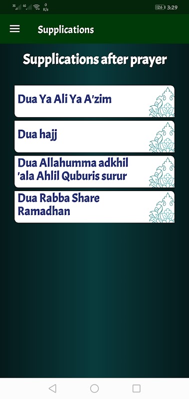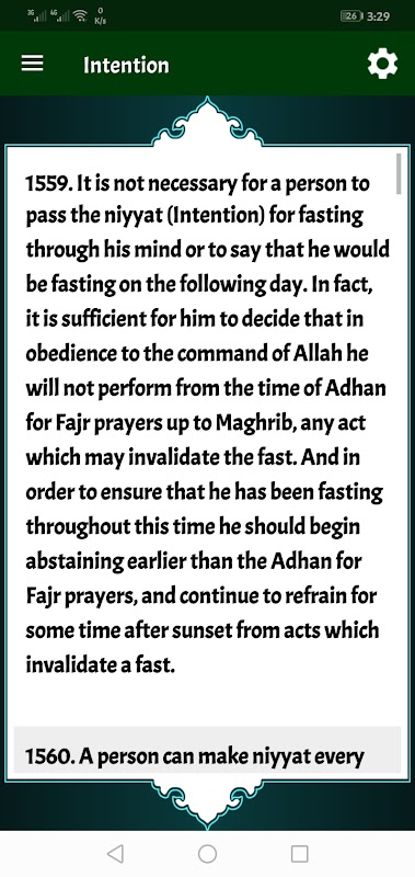 ซอฟต์แวร์นี้ประกอบด้วยสองส่วน: Ahkam และ Supplications ในส่วนของ Ahkam นั้น กฎหมายอิสลามและกฎการถือศีลอดนั้นระบุไว้ตามฟัตวาของความมีชื่อเสียงของเขา Hazrat Ayatullah al-Uzma Sistani (ขออัลลอฮ์ทรงพระเจริญยิ่งยืนนาน) และส่วนของการวิงวอนได้รวมข้อความภาษาอาหรับ การแปล และการทับศัพท์ แม้ว่าส่วนของการวิงวอนจะมีโอกาสได้ยินเสียงของนักร้องชาวอาหรับที่มีชื่อเสียงบางคน