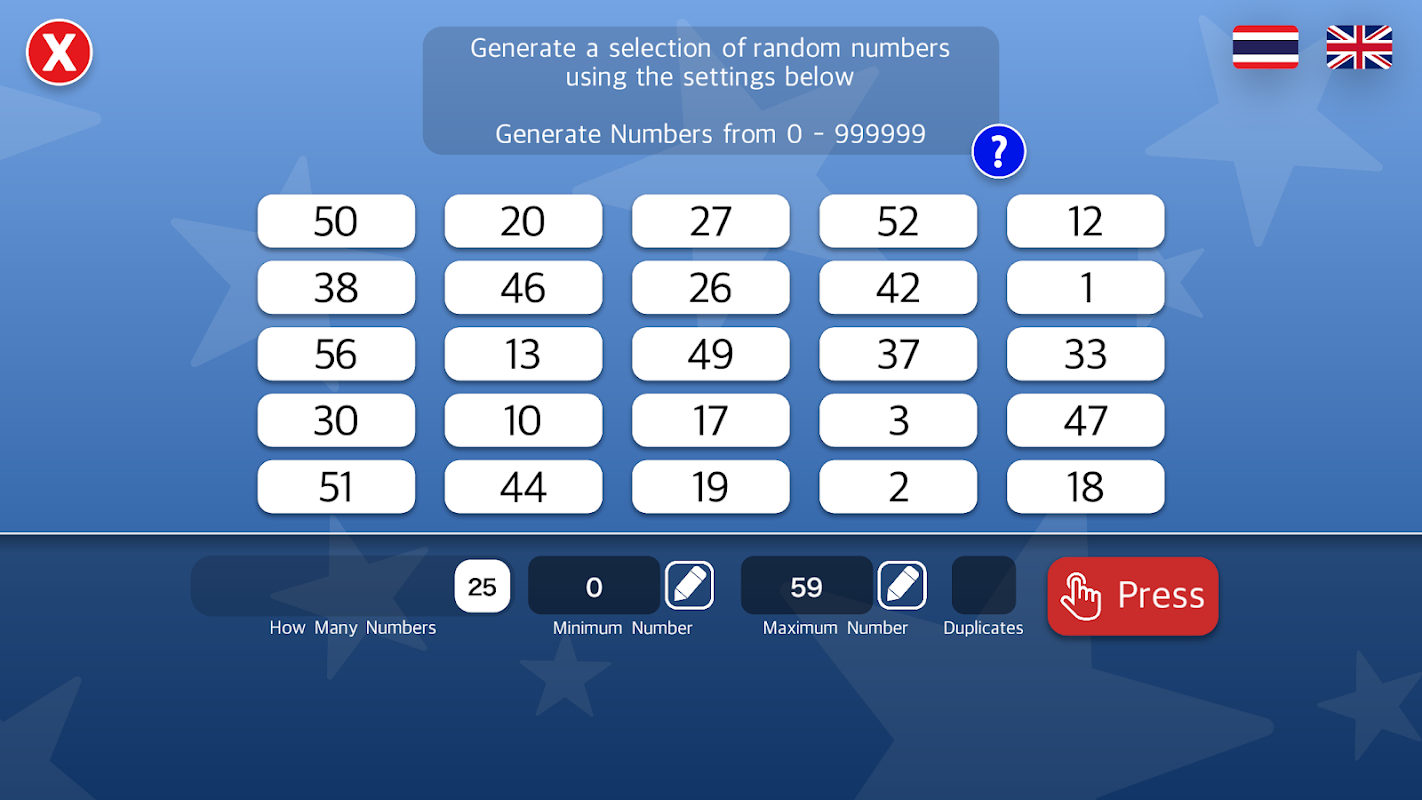 เหมาะสำหรับการเลือกหมายเลขลอตเตอรี่ ตั๋วสลากกินแบ่ง และการจับฉลากแบบสุ่ม