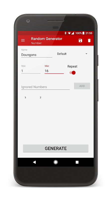 Generate random numbers or entries! Perfect for dice, lottery tickets, and more!