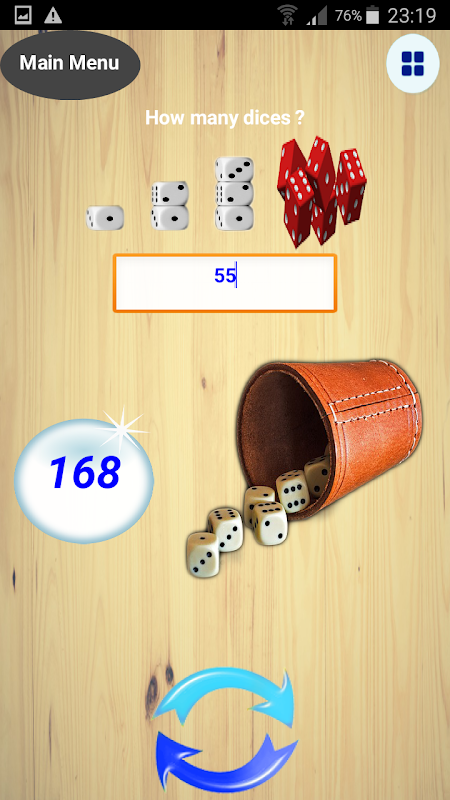• You can play in dice games and use 1 or 2 or 3 dice "on table" or much more dice in bucket (from 1 to 1000 dice)