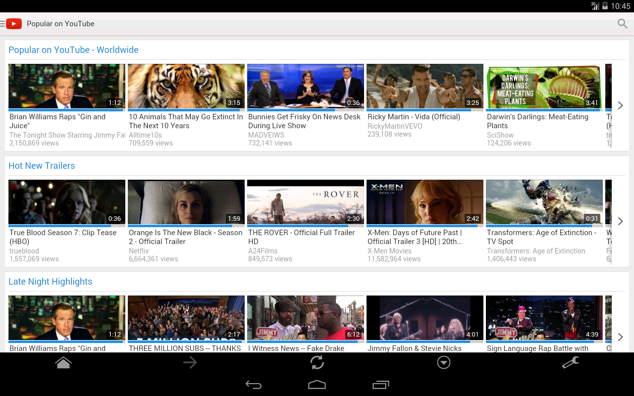 Throughout all youtube.com, this app shows a bar of likes and dislikes under every video snapshot, just like the official one. In this way, you can view the rating of the videos before watching the actual video, so that you can avoid garbage and spot amazing ones.