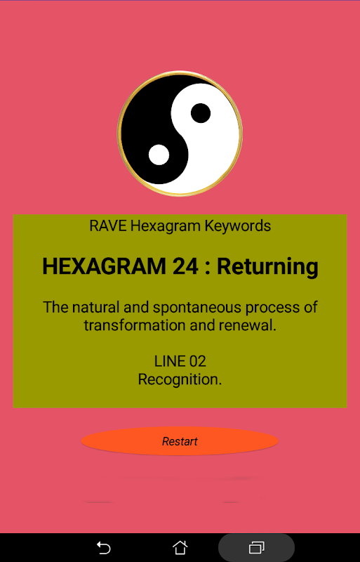 App will randomly show RAVE Hexagram keywords.