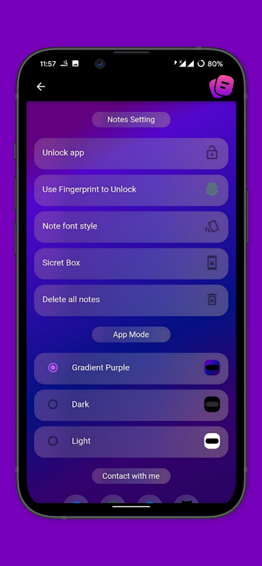 • สามารถตั้งรหัสผ่านเฉพาะสำหรับแต่ละโน้ตและรหัสผ่านสำหรับแอปทั้งหมด และใช้ลายนิ้วมือเพื่อปลดล็อกแอปได้