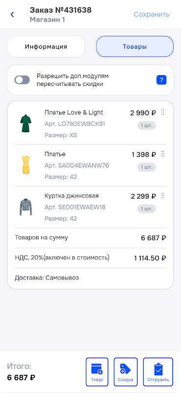 คุณจะสามารถจัดการร้านค้าได้ไม่จำกัดจำนวน ดำเนินการตามคำสั่งซื้อ คำขอสำหรับการซื้อและการสั่งซื้อล่วงหน้าในคลิกเดียว สแกนรหัสฉลาก จัดส่งสินค้า และควบคุมธุรกรรมทางการเงินของคุณ