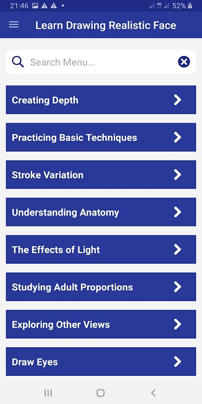 แอปพลิเคชั่น "แบบฝึกหัดการวาดใบหน้าที่เหมือนจริง" นี้ประกอบด้วยวิธีการวาดใบหน้ามนุษย์ที่เหมือนจริงบางรูปแบบซึ่งจะให้คำแนะนำมากมายแก่คุณในการวาดแบบจำลองใบหน้าที่สมจริงตามที่คุณต้องการ แบบฝึกหัดการวาดใบหน้าที่สมจริงบางอย่างที่มีอยู่ในแอพนี้คือ: