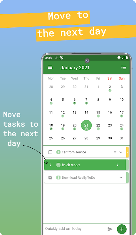 ✔ย้ายระหว่างวันและรายการสิ่งที่ต้องทำอย่างรวดเร็ว