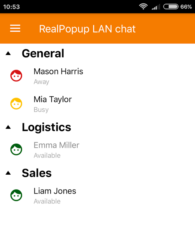 โปรแกรมส่งข้อความโต้ตอบแบบทันทีสำหรับการแชทในเครือข่ายท้องถิ่น มันสนับสนุนการเชื่อมต่อ Wi-Fi และไม่จำเป็นต้องมีเซิร์ฟเวอร์ทุ่มเทเพื่อให้ทำงานได้ รุ่น Android มีผลบังคับใช้ในการติดต่อสื่อสารระหว่าง Windows และ Mac รุ่นของลูกค้า RealPopup IM
