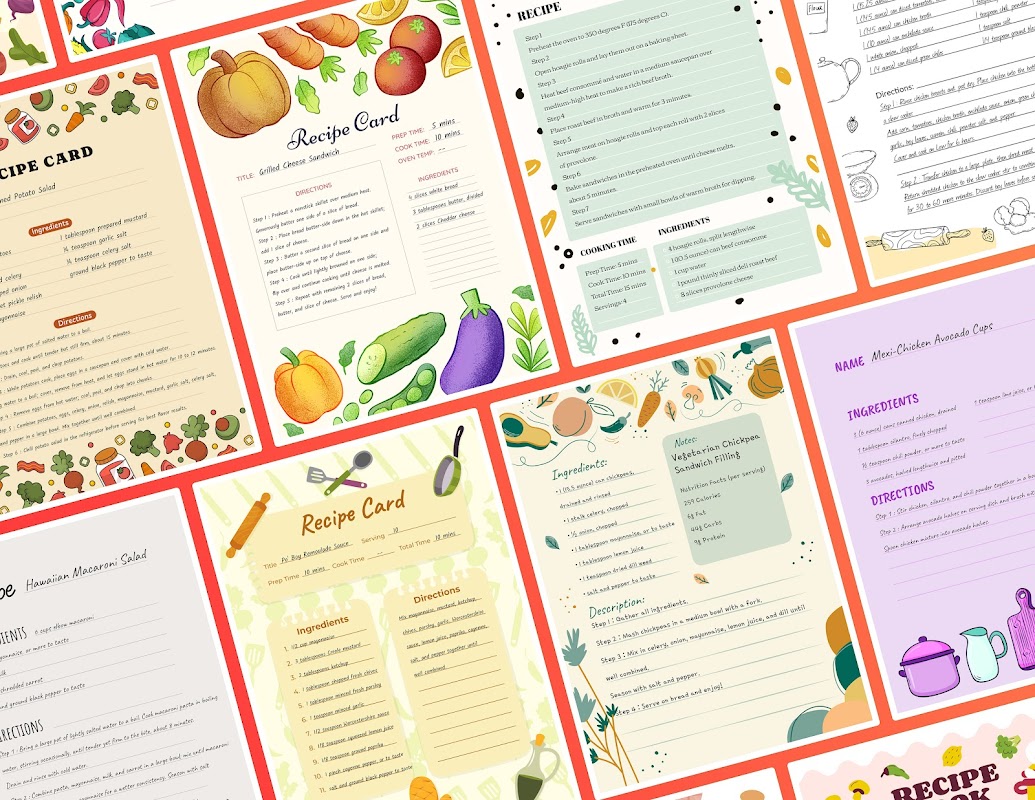 คุณสามารถออกแบบการ์ดสูตรอาหารที่สวยงามและโดดเด่นสำหรับหนังสือทำอาหารได้อย่างง่ายดาย