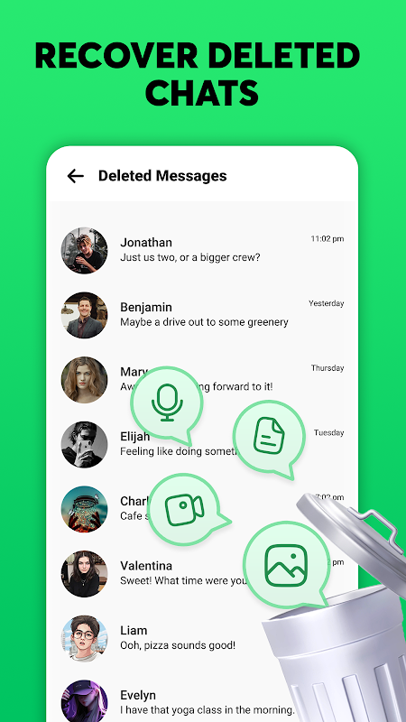 ติดตั้งแอปกู้คืนข้อความที่ถูกลบ และเพลิดเพลินกับการกู้คืนข้อความ การบันทึกสถานะ และการกู้คืนเสียง รูปภาพ และเอกสารได้อย่างง่ายดาย ปกป้องการสนทนาและสื่อของคุณวันนี้!