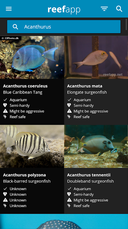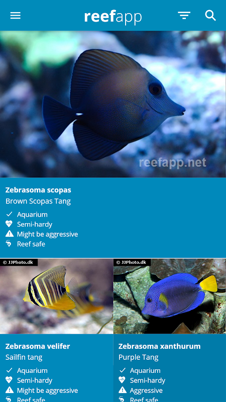 Reef App เป็นสารานุกรมที่ครอบคลุมปลาทะเลมากกว่า 800 ตัวและสัตว์ไม่มีกระดูกสันหลังในทะเลจำนวน 35 ตัว