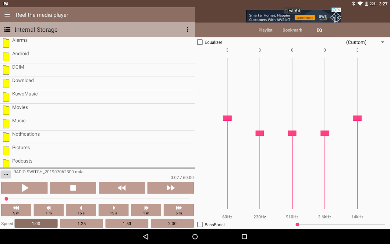 การเลือกเพลงตามโฟลเดอร์, หน่วยความจำตำแหน่งการเล่น, การเปลี่ยนแปลงความเร็วในการเล่น (เวลาบันทึก), เล่นไปข้างหน้าอย่างรวดเร็ว, ค้นหาเงียบ, เพลย์ลิสต์, บุ๊คมาร์ค, ทำซ้ำส่วน, ข้ามส่วนที่กำหนดเองได้ ) แอปพลิเคชั่นโฆษณาที่ไม่เป็นการรบกวน