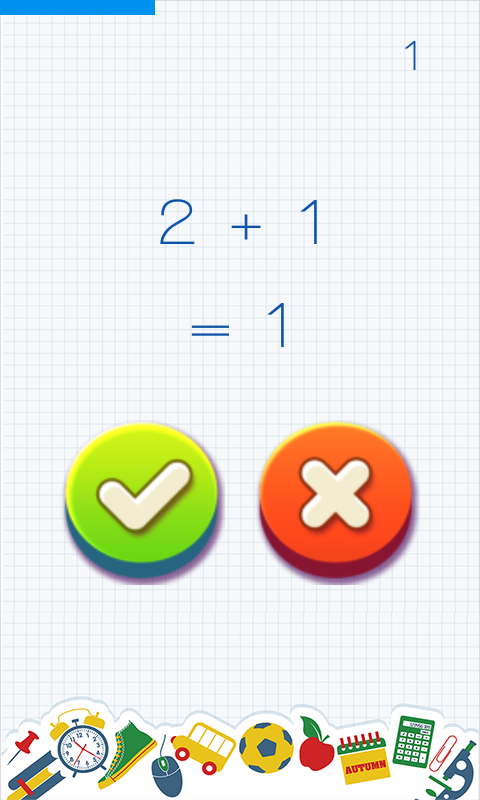✓ Very simple equations will be shown on the screen and you have to tell if it is correct or not