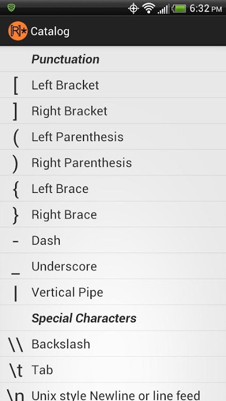 - แคตตาล็อกของการแสดงออกของตัวอักษรพิเศษปกติและลำดับและประเพณีของพวกเขา