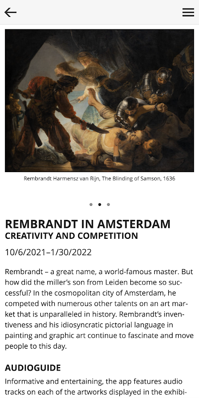 Die App beinhaltet Audiotracks und Abbildungen zu zahlreichen Kunstwerken der Ausstellung und dauert rund 70 Minuten.