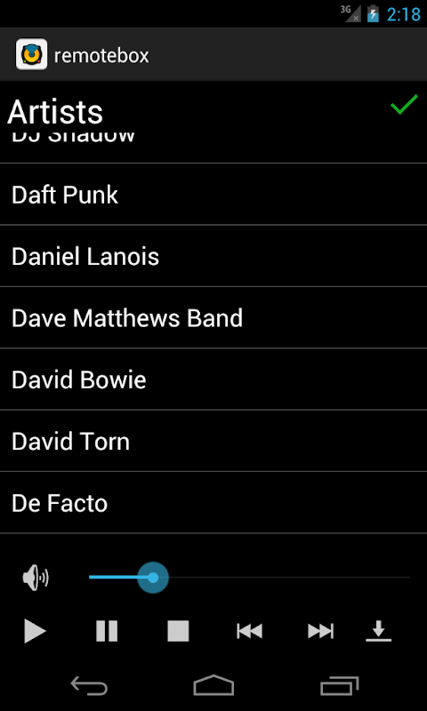 Remotebox is a simple remote controller for Rhythmbox, gnome's music player. It allows you to download your music list, select songs to be played and control the playback through a WiFi connection. Currently, GTK3's Rhythmbox (versions 2.9x and 3.x) is fully supported and the support for GTK2 (version 0.x) is experimental.
