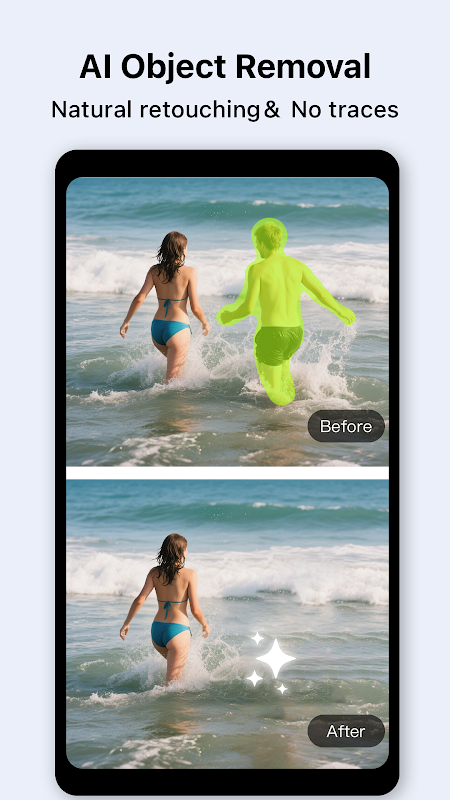 - เครื่องมือ ลบวัตถุที่ไม่ต้องการ ที่มีประสิทธิภาพสูง: ลบวัตถุที่ไม่ต้องการ ออกอย่างรวดเร็ว แก้ไขรูปภาพ และปรับปรุงคุณภาพของภาพถ่ายของคุณ