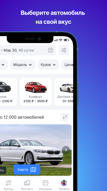 ดาวน์โหลดแอปและเข้าถึงรถยนต์กว่า 750 คันที่มีให้เช่าในมอสโก เซนต์ปีเตอร์สเบิร์ก โซชี คาลินินกราด และเมืองอื่นๆ ทั่วรัสเซีย