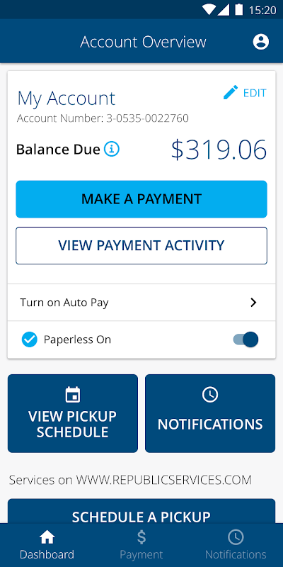 แอป Republic Services ช่วยให้คุณจัดการบัญชี Republic Services ของคุณ