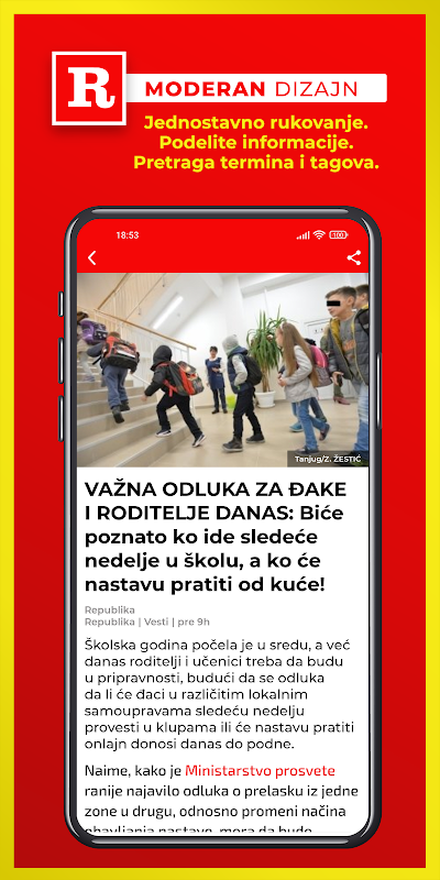 แอปพลิเคชั่น Republika.rs เป็นหนังสือพิมพ์รายวัน "Srpski Telegraf" ฉบับดิจิทัล