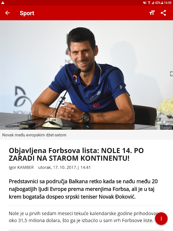 ข่าวจากเซอร์เบีย ภูมิภาค โลก การอัปเดตสดและความคิดเห็นของผู้อื่น - นำข่าวที่สำคัญที่สุดของคุณติดตัวไปทุกที่ สำรวจเรื่องราว พาดหัว เนื้อหา และสื่ออื่นๆ ในหัวข้อต่างๆ ตั้งแต่ธุรกิจไปจนถึงการพักผ่อน การเมือง กีฬา ความบันเทิง วัฒนธรรม และอื่นๆ