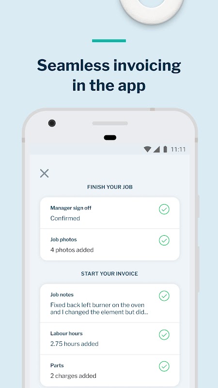 ผ่านแอพของเราคุณสามารถรับการแจ้งเตือนเกี่ยวกับงานใหม่ที่มีอยู่ยอมรับและกำหนดเวลาภายในแอพและเพิ่มรูปภาพและคำแนะนำที่มีให้กับลูกค้าหลังจากงานเสร็จสมบูรณ์