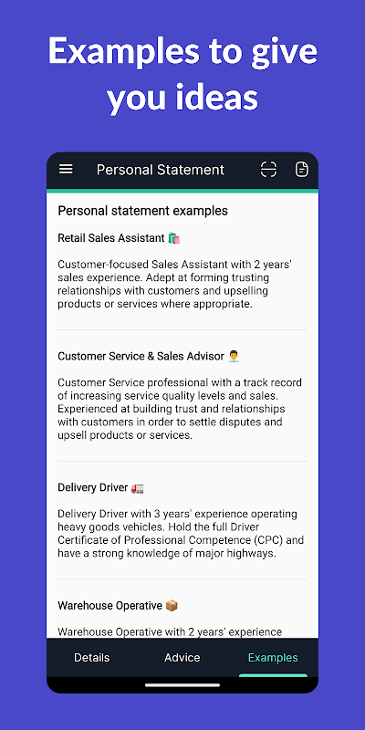 Looking for inspiration? We have examples for each CV section to give you intelligent ideas on what to include.