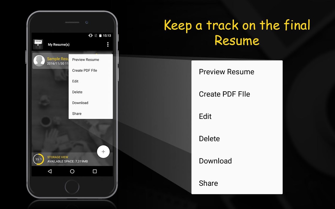 ► Start building a resume in on your Android phone; gone are the days when you were dependent on your laptop to create a document like this.