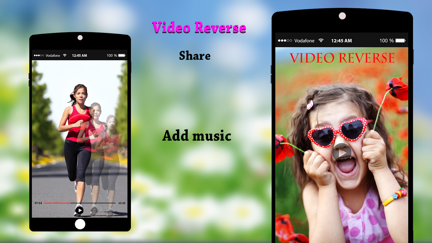 Reverse Video Maker is a video editing app, which enables you to capture new video or select existing one from your camera and gives your video a funny effect, by trimming and reversing it, and by adding a background music.