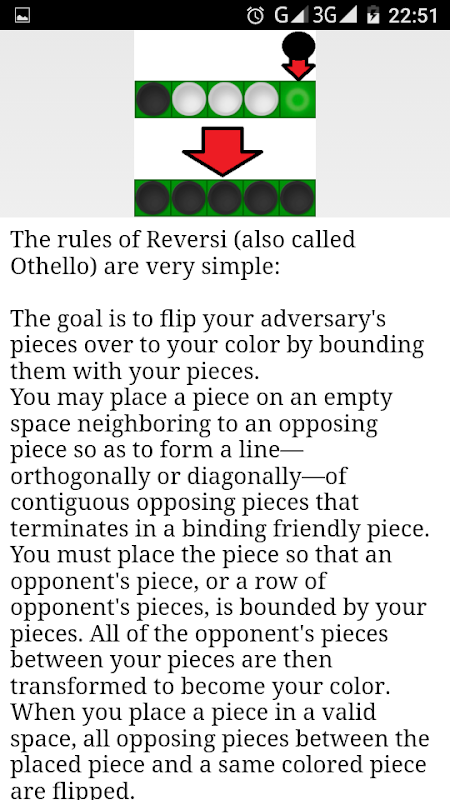 The goal is to flip your adversary's pieces over to your color by bounding them with your pieces