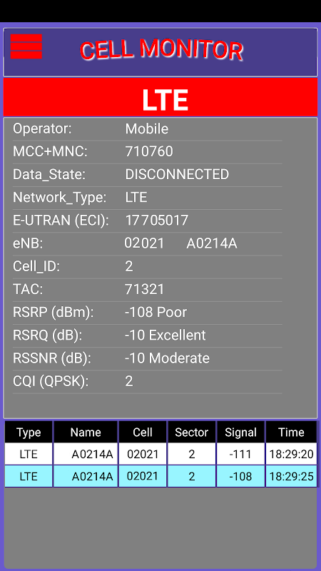 * LTE (E-UTRAN, sector,TAC,Signal Strength)