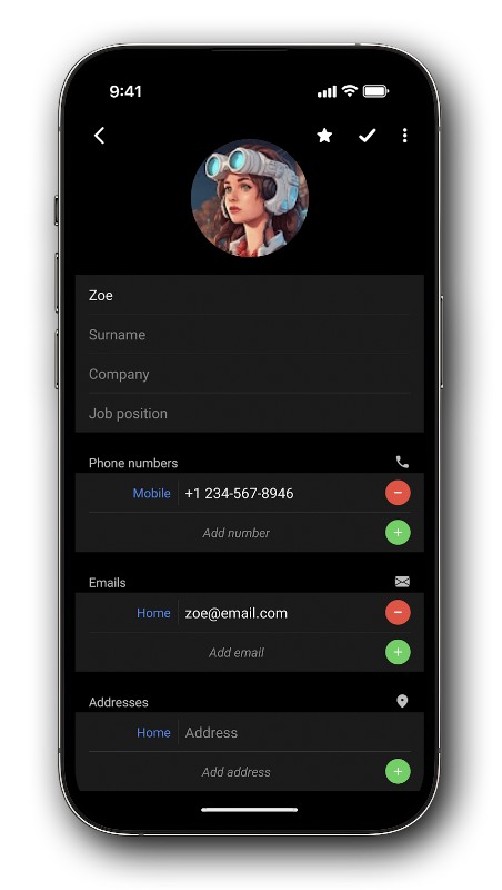 ควบคุมรายชื่อผู้ติดต่อของคุณโดยสร้างผู้ติดต่อส่วนตัวที่สามารถเข้าถึงได้ภายในแอปเท่านั้น เพื่อให้มั่นใจว่าข้อมูลส่วนบุคคลของคุณยังคงเป็นความลับและปลอดภัย