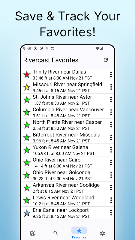 ไม่ว่าคุณจะเป็นนักเดินเรือ นักพายเรือ เจ้าของที่ดิน หรือเพียงแค่สนใจเกี่ยวกับทางน้ำในท้องถิ่น Rivercast ช่วยให้คุณเห็นได้อย่างชัดเจนว่าเกิดอะไรขึ้นในแม่น้ำที่คุณสนใจ