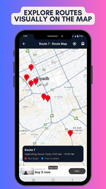 นำทางระบบขนส่งสาธารณะในริยาดอย่างง่ายดายด้วยแอปคู่มือเส้นทางรถประจำทางริยาดที่ไม่เป็นทางการ!