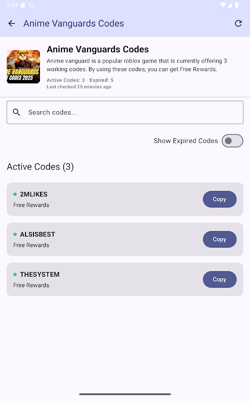- คุณสมบัติการค้นหา: ค้นหารหัสสำหรับเกมที่คุณชื่นชอบได้อย่างรวดเร็ว