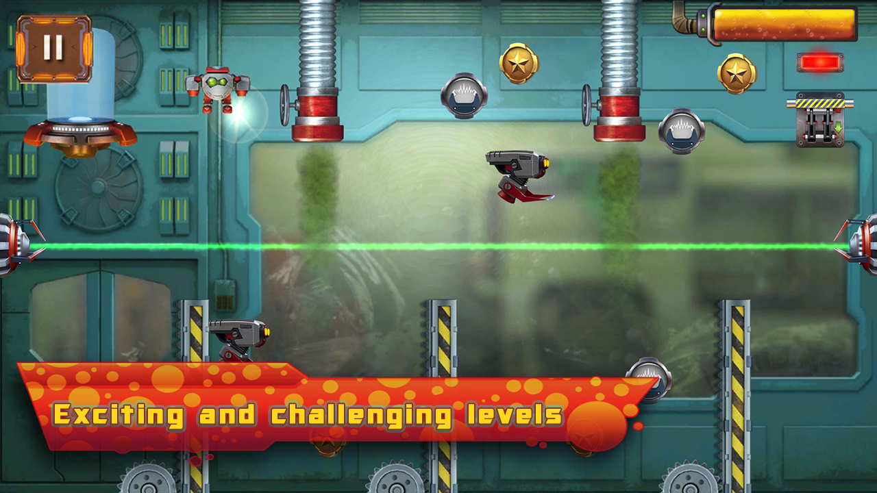 Make sure you keep your robot safe from Lasers, Enemy Missiles, Rockets, Enemy Robots, Leak gas pipes, Black holes and many other hurdles. Collect shields and safely open parking and landing gates and collect coins to unlock different levels and worlds.