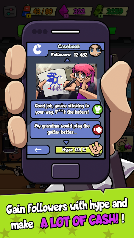 ด้วยฐานแฟนคลับที่เพิ่มขึ้น คุณสามารถถ่ายวิดีโอเพลง เผยแพร่เพลง และไต่อันดับเพื่อเป็นนักดนตรีที่ได้รับความนิยมสูงสุด ไลฟ์สไตล์พังก์ร็อกรออยู่!