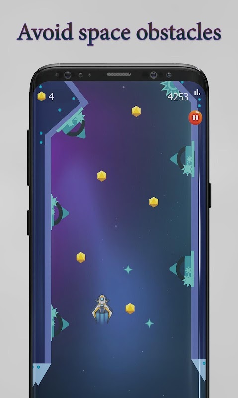 Rocket it, the free arcade space game, comes with a clean and neat design and the interface is so user-friendly and the gameplay is so easy to learn that you will get the whole idea as soon as passing through the first couple of obstacles. Speaking of the easy to learn gameplay, you just need to use your finger to control the spaceship, move it to the right and left or even increase the speed.