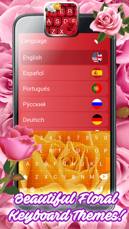 Decorate your mobile phone with “flower keyboard themes” and rose “background skins for girls”! This is the ultimate keyboard choice for stylish and romantic girls who want their screen to reflect their romantic and sweet personality! This fast-typing keypad app lets you enjoy texting and chatting with your friends and family while looking at miraculous flower garden blossoming on your screen! Customize your screen with cute rose wallpaper and background images and dress up your mobile phone with fancy pink rose valentine keyboard. You can use fast typing option, suggestions and auto-correction for the ultimate texting experience! 🌹 Rose Keyboard with Emojis & Pink Themes for Girls 🌹 is perfect for any device, but apart from aesthetics we offer you a high level of functionality, too. Try out the ultimate mode and experience the art of fast typing!