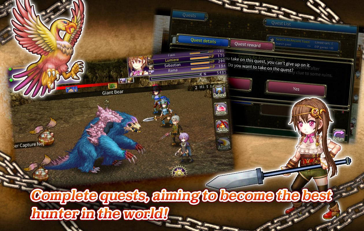 - รวบรวมสัตว์ประหลาดที่จับได้ และเปลี่ยนให้เป็นอุปกรณ์และไอเท็ม! - ตั้งเป้าหมายที่จะกลายเป็นนักล่าที่แข็งแกร่งที่สุดโดยรับคำขอจากกิลด์