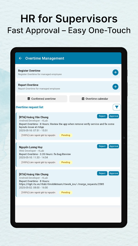 4. คำขอลาและล่วงเวลา: ส่งและติดตามสถานะการลา ล่วงเวลา และการอนุมัติอย่างโปร่งใส