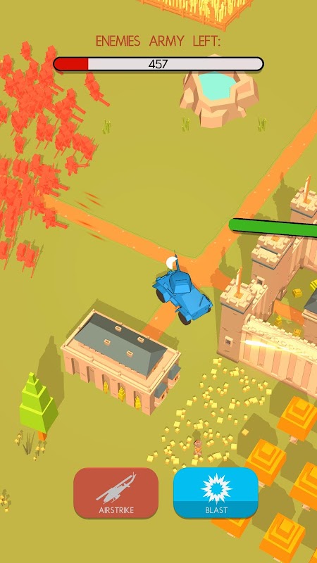 Defend your castle by running over the enemy's army, shooting them, and using airstrikes!