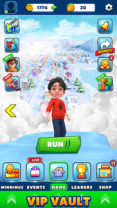 แข่งขันในกิจกรรมพิเศษและการแข่งขันเพื่อรับรางวัลสุดมหัศจรรย์จากโลกแห่งความจริง รวมถึงบัตรของขวัญและรางวัลสุดตื่นเต้นอื่นๆ การวิ่งแต่ละครั้งทำให้คุณมีโอกาสทำคะแนนได้มาก!