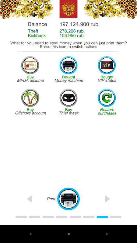 โปรดทราบ! เกมนี้อิงจากเหตุการณ์สมมติและไม่มีความเกี่ยวข้องกับการเมืองจริง ผู้สร้างเกมเพียงพยายามดึงความสนใจไปที่ปัญหาการทุจริตในรัสเซียในรูปแบบที่น่าขัน
