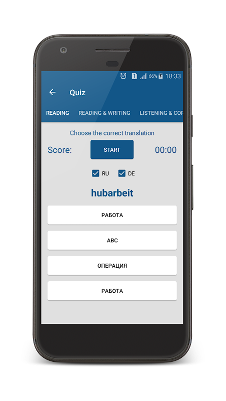 Russian German dictionary offline. Quiz - Test: Reading, listening, writing