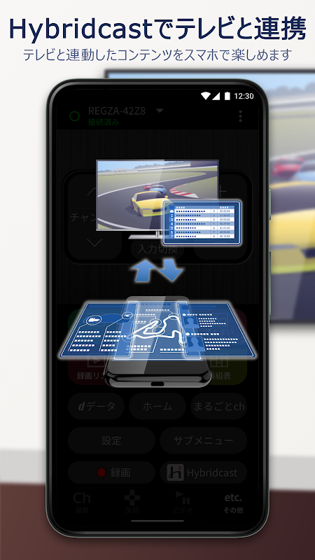 ด้วยการเชื่อมโยงกับ REGZA คุณสามารถเพลิดเพลินกับเนื้อหาที่ให้บริการโดย Hybridcast บนสมาร์ทโฟน/แท็บเล็ตของคุณ