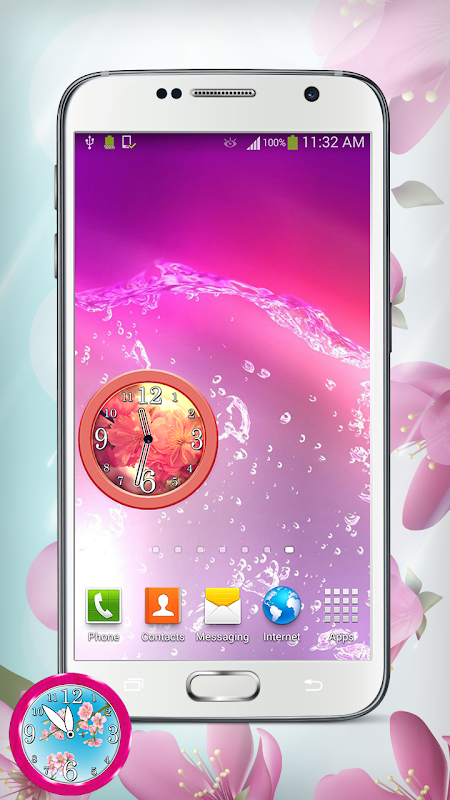 Sakura pictures and cherry blossom theme which this lovely clock widget contains will bring beauty and elegance to your phone. You can make your own clock any time you want! Choose among ten pink analog clock widgets with pink flowers and white flowers. Create an incredible flower clock by choosing among ten amazing sakura clock widget designs – cherry blossom clock faces, hands and digits. What is more interesting about this pink clock app is that you can also set the alarm clock. All you have to do is choose the time and ringtone from your music gallery, and you will have the most amazing romantic clock which will wake you up in the morning. Moreover, you will always be informed about accurate time and this sense analog clock will prevent you from being late ever again.