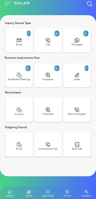 The App provides option to manage enquiries from various sources such as Email / call / WhatsApp / chatbot etc. Also the App provides option for prospecting all the enquiries.