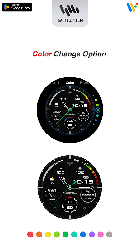 *แอป 'คู่มือการติดตั้ง SamWatch' เป็นแอปเพิ่มเติมที่รองรับการดาวน์โหลดแอปบนอุปกรณ์ Wear OS อาจแตกต่างจากภาพหน้าจอหน้าปัดนาฬิกาของแอป "คู่มือการติดตั้ง SamWatch" และภาพหน้าจอหน้าปัดนาฬิกาที่ดาวน์โหลดจริง ผลิตภัณฑ์แอป Watchface ของ SamWatch ส่วนใหญ่มีแอปสำหรับสมาร์ทโฟน แอปสำหรับ "คู่มือการติดตั้ง SamWatch" ช่วยให้คุณดาวน์โหลดแอป Wear OS เท่านั้น