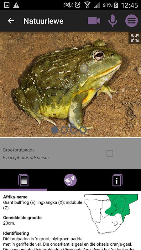 App นี้เหมาะสำหรับผู้เริ่มต้นเช่นเดียวกับผู้เข้าชมไปยังภูมิภาค เหล่านี้รวมถึงภาพที่สวยงาม, diereroepe วิดีโอ, แผนที่และง่ายต่อการอ่านข้อความในสัตว์ป่าทางตอนใต้ของทวีปแอฟริกา (รวมถึงสถานะการอนุรักษ์แต่ละชนิด)