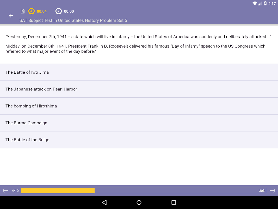SAT ทดสอบเรื่องนำเสนอโอกาสที่ยอดเยี่ยมสำหรับนักเรียนที่จะได้รับเครดิตวิทยาลัยและทดสอบจากหลักสูตรเบื้องต้น การสอบเหล่านี้ยังสามารถเป็นสิ่งที่ท้าทายมากขึ้นเพราะพวกเขาเกี่ยวข้องกับวัสดุระดับวิทยาลัย แอปพลิเคตัวแทนผู้สอน SAT II ประวัติศาสตร์สหรัฐสำหรับอุปกรณ์ Android ทดสอบนักเรียนกว้างของความรู้ที่จำเป็นในการผ่านการสอบในวันสอบ